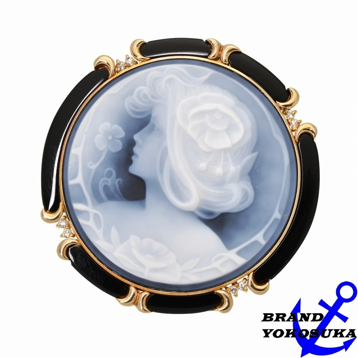 > 827 ストーン カメオ K18YG D0.10ct ブローチ兼ペンダント 18金 750 イエローゴールド ダイヤ 気品 上品 エレガント レディース 送料無料