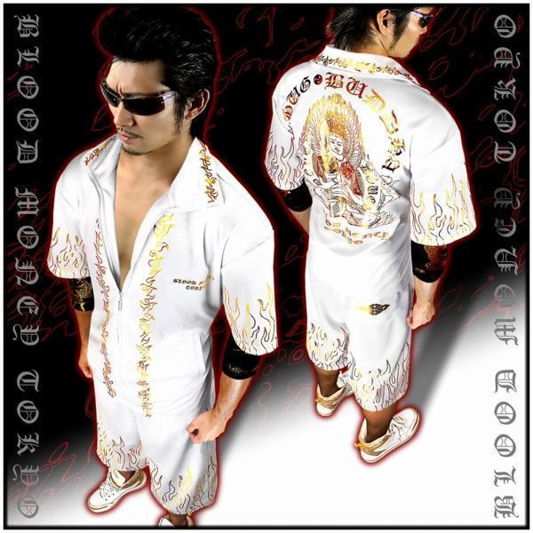 - 半袖 半ズボン セットアップ ジャージ メンズ 和柄 千手観音 仏様 上下 夏物 服 オラオラ系 チョイ悪 ヤンキー ヤクザ 派手 13018 白 金