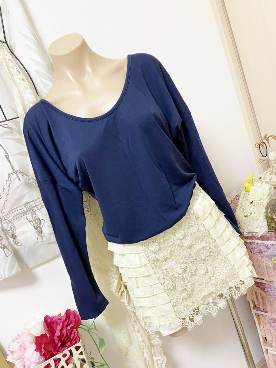 - レディスSサイズ:なでしこ【nadesico】さらすべレースミニスカート*上身頃ゆったりドッキングワンピース:ネイビー 定価:19,800+税