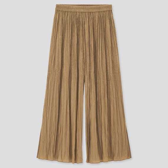 - ユニクロ ワッシャー サテンスカートパンツ ブラウン Sサイズ ペチコート付き