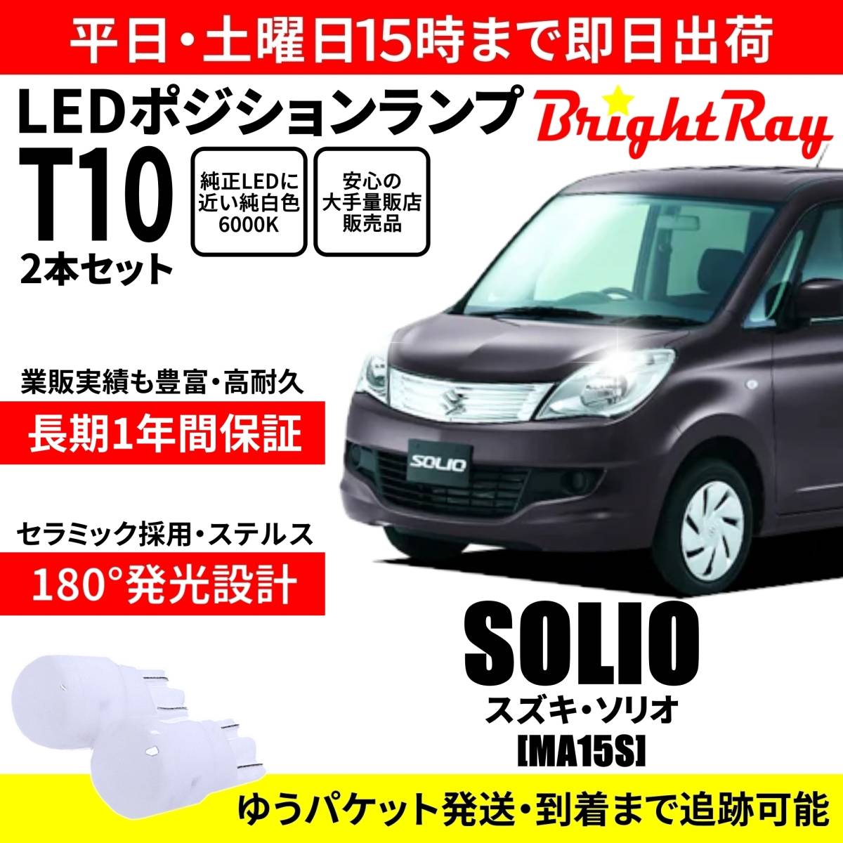 - 送料無料 1年保証 スズキ ソリオ MA15S BrightRay T10 LED バルブ ポジションランプ 車幅灯 2本セット 車検対応 ホワイト