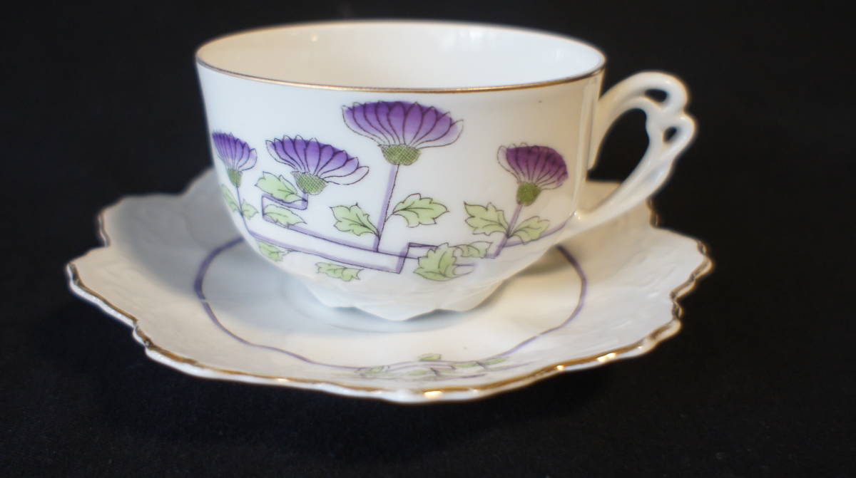 > アールヌーボーとデコのデザインが良い フランス購入 花柄カップ&ソーサー 割れ、カゲなし 容量たっぷり