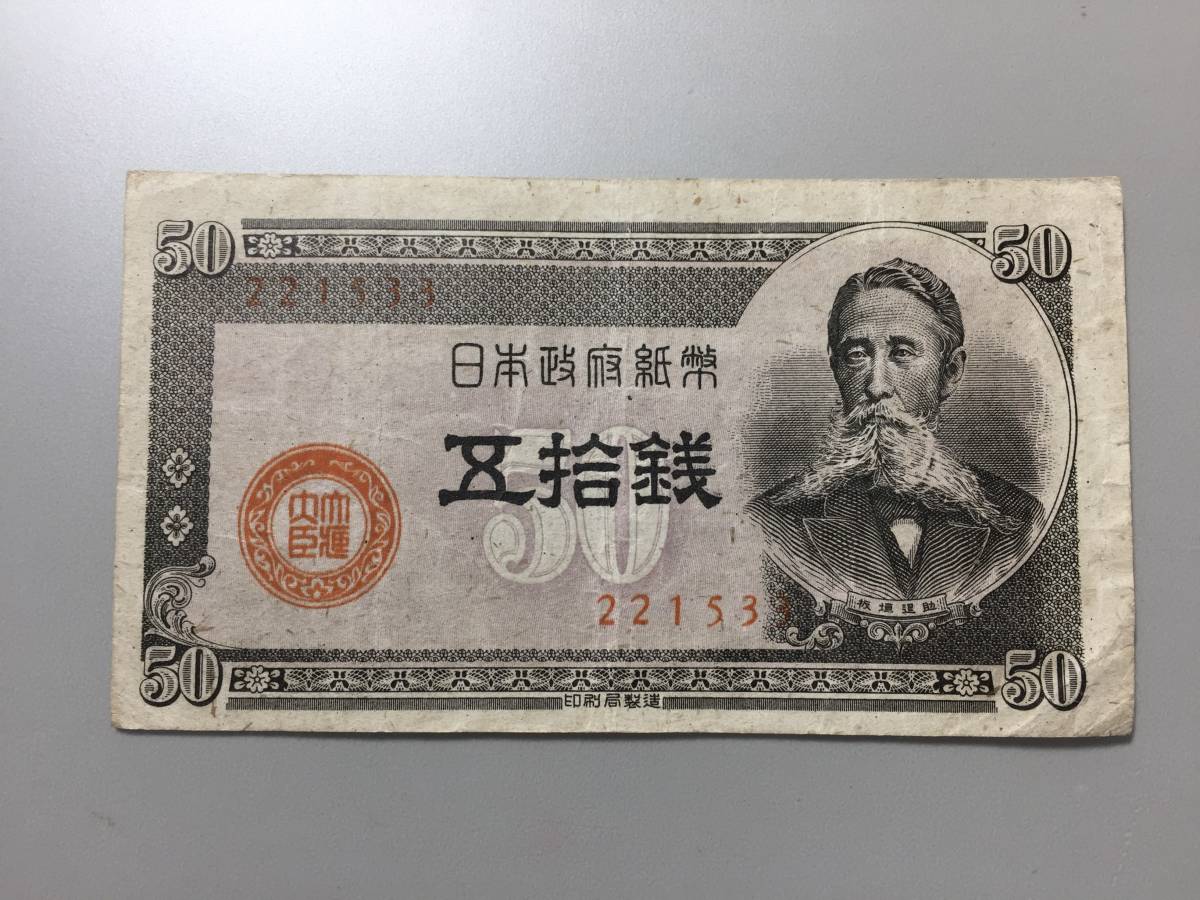 - 【注目/珍品/レア/希少/貴重】板垣50銭札 裏写り エラー