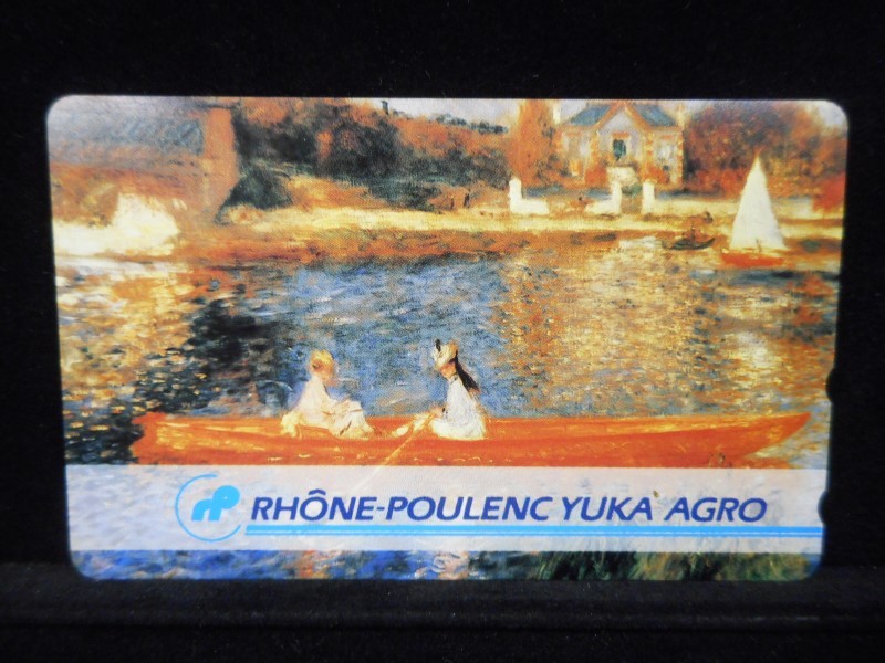 - テレカ 50度数 湖畔 ボート 油絵 ローヌ・プーラン イラスト 未使用 S-0133
