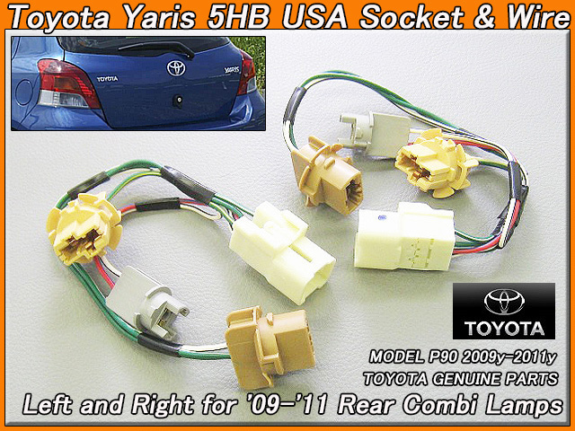 > ヴィッツP90後期/TOYOTA/トヨタYARISハッチバック純正USハーネス左右-テールライト用(09-11y)/USDM北米仕様Vitzヤリス5HBソケット&配線USA