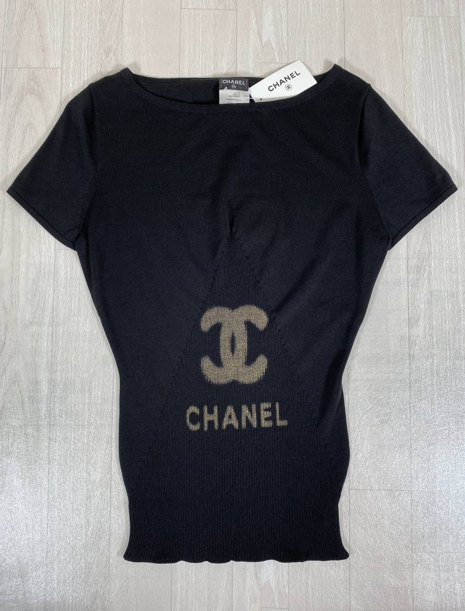 - ★11Pシャネル CHANEL CCマーク 半袖 カットソー 黒 38