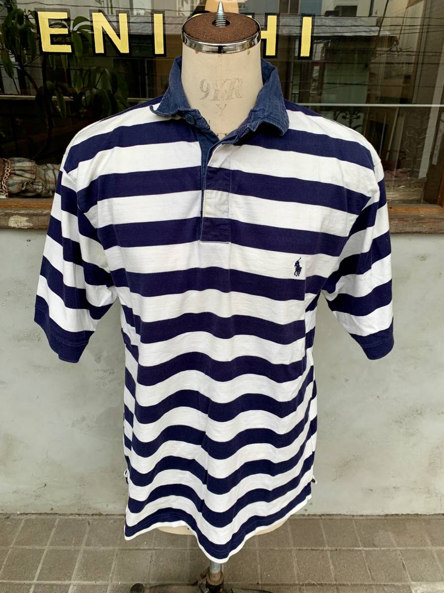 > ★POLO★Ralph Lauren★ポロ★ラルフローレン★半袖★ポロシャツ★ボーダー★コットン★ホワイト★ネイビー★メンズ★紳士★サイズ★L★