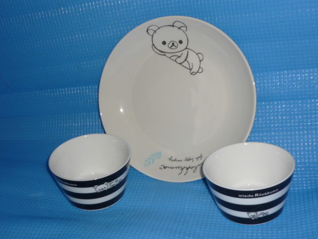 - b★未使用・非売品★2014年ミスド×リラックマ ボーダー柄ペアボウルとリラックマのお皿