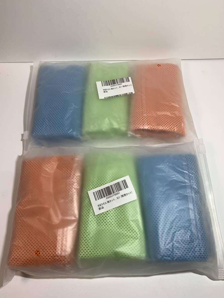> ★ 格安出品!! 冷感タオル 3色 6枚セット 未使用 青 橙 緑 タオル 冷感 夏用 雑貨 スポーツ アウトドア ブルー オレンジ グリーン
