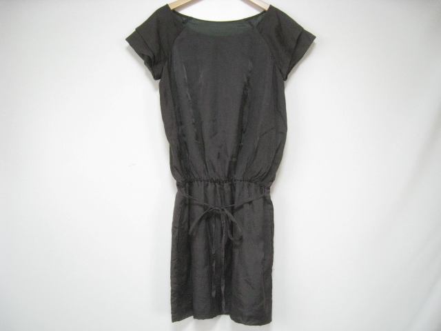 - La joie de vivre et LUCA ルカ トップス カットソー ブラウス ロング丈 半袖 丸首 ウエストリボン 茶 ブラウン
