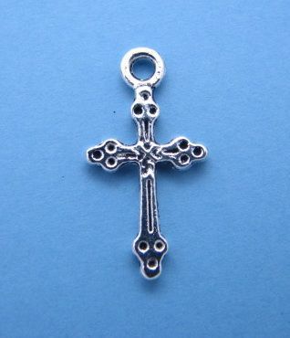 - メタルパーツ クロス 十字架 約11x21mm 銀色 チャーム レジン mpr-104