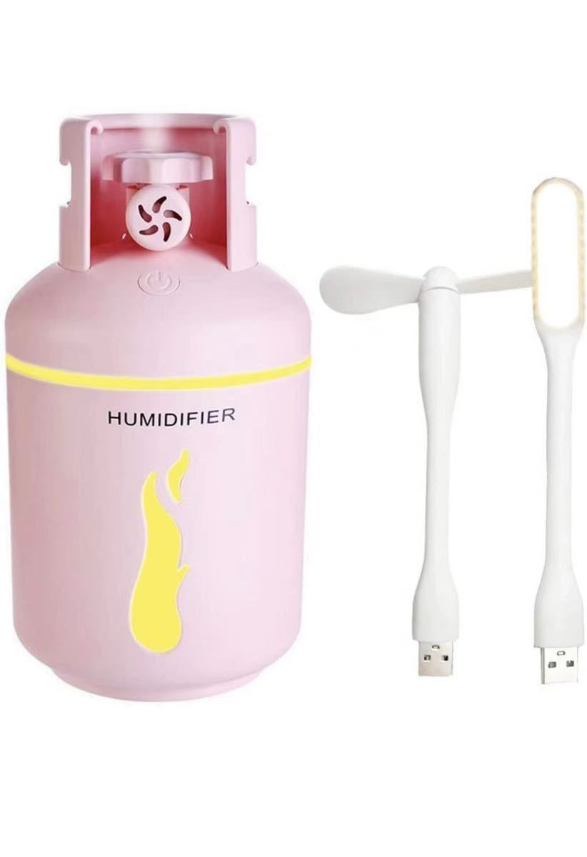 - 加湿器 卓上 超音波式 大容量 300ML 水溶性アロマ対応 車用加湿器 LEDライト 静音乾燥対策 USB接続タイプ 扇風機とライト付き ピンク