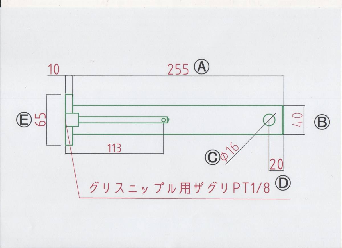 - NO 1197 Φ40用 ツバ下255mm グリス穴付きバケットピン