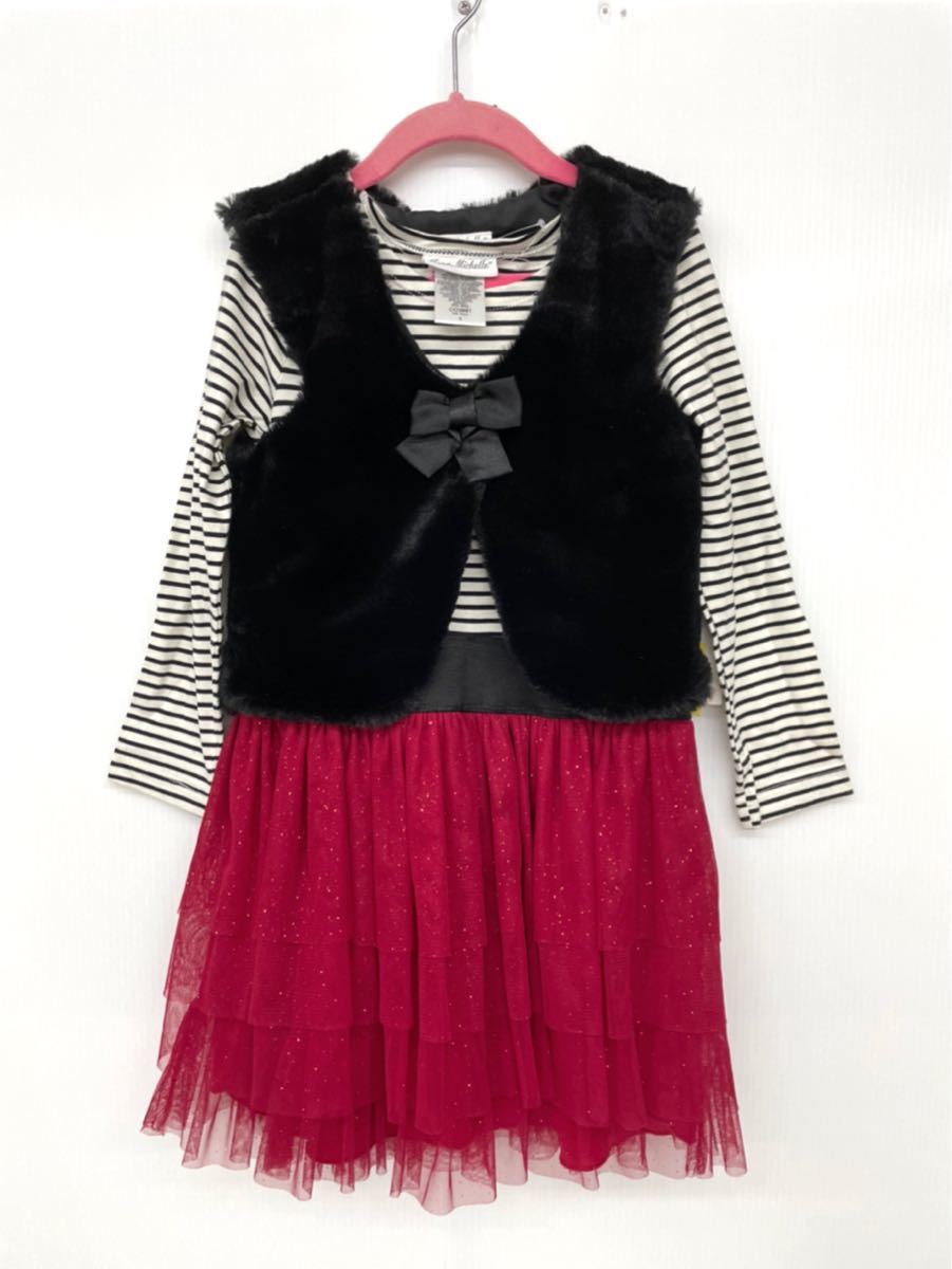 > Jona Michelle ジョナミシェル ガールズ 女の子 ワンピース ドレス 赤ラメ ベスト付き 5 / 5歳 お誕生日会 結婚式 お祝い 発表会 ★