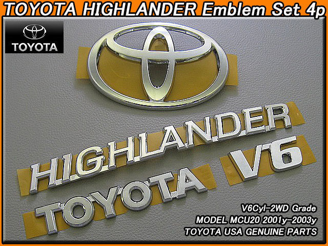 > クルーガー前期MCU20/TOYOTA/トヨタHighlander純正USエンブレムセット-前後4点(3.0L.V6-2WD)01-03y/USDM北米仕様USAハイランダーTマーク
