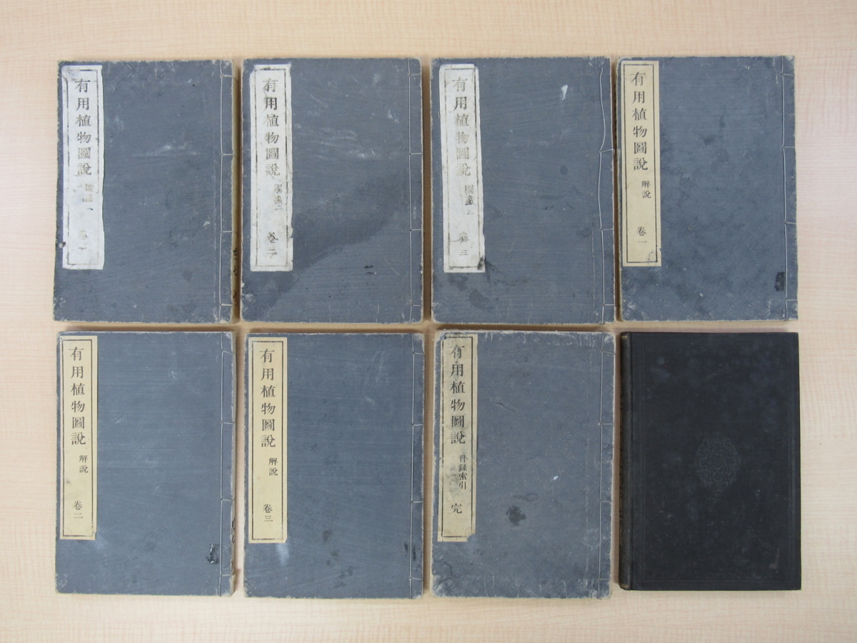 - 服部雪斎図画 田中芳男・小野職愨撰『有用植物図説』(全8冊揃)明治24-36年刊 明治時代和本 彩色木版画譜 植物画譜 植物誌 植物学