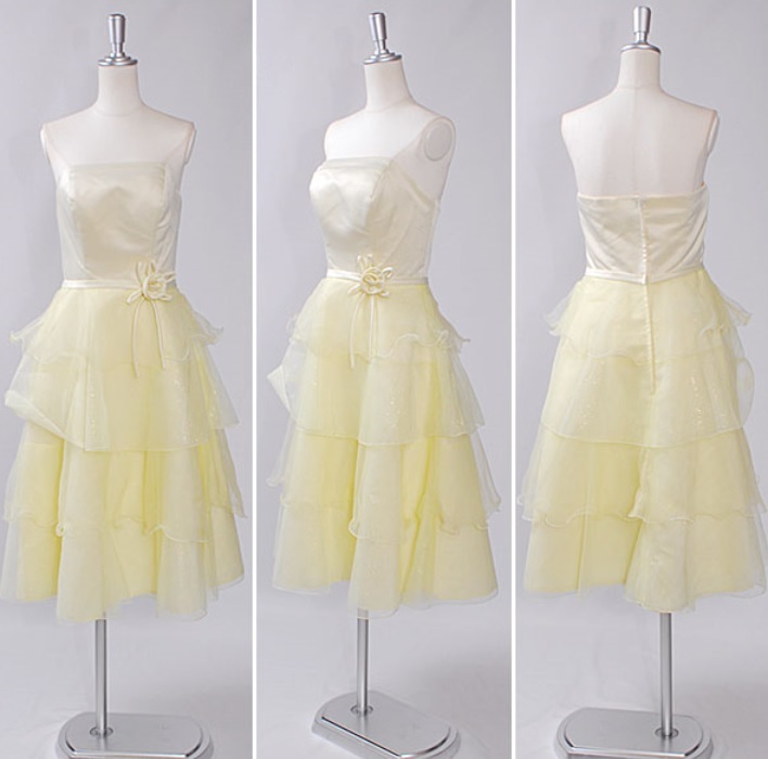- 【美品】 ベアトップティアードドレス (黄) Sサイズ