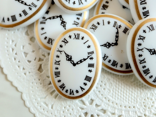 > 時計 転写 ローマ数字 ヴィンテージ プラスチック カボション クラシカル レトロ ハンドメイド アクセサリー パーツ 25×18mm 4個