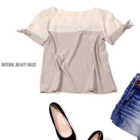 - ☆☆ 美品 NATURAL BEAUTY BASIC ナチュラルビューティーベーシック ☆☆ 可愛いリボン バイカラー カットソー S 春 夏 22D06