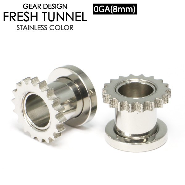 > フレッシュトンネル ギア 0G (8mm) アイレット サージカルステンレス316L 歯車デザイン ハード ボディピアス イヤーロブ 0ゲージ 8ミリ┃