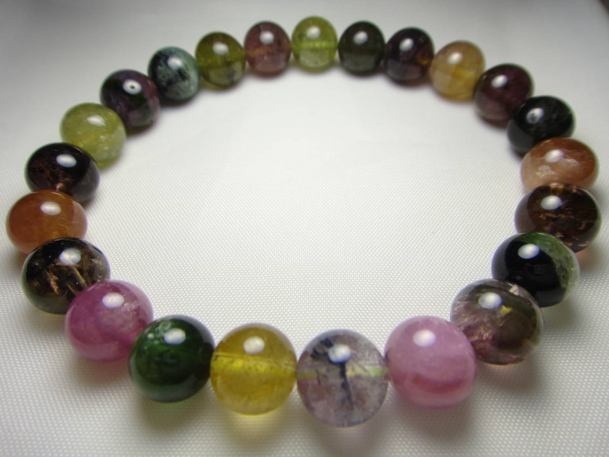 - 天然石 トルマリン マルチカラー 約8~8.5㎜玉 美! ブレスレット A971