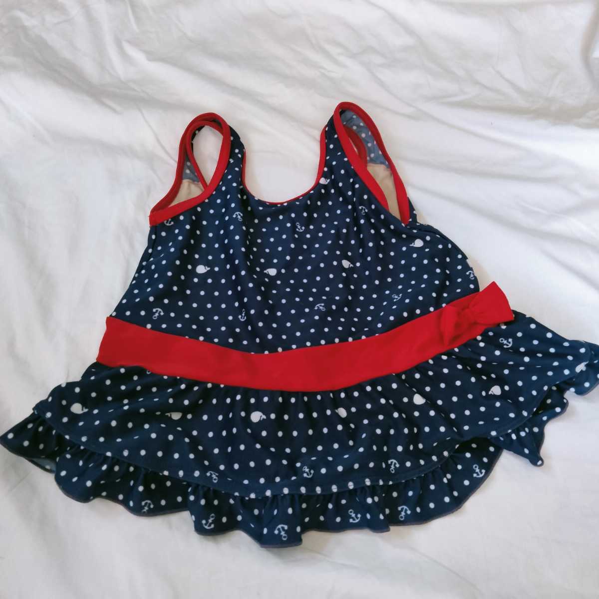 - キッズ水着 95 女の子 西松屋 ワンピース水着 紺色 クジラ 220630