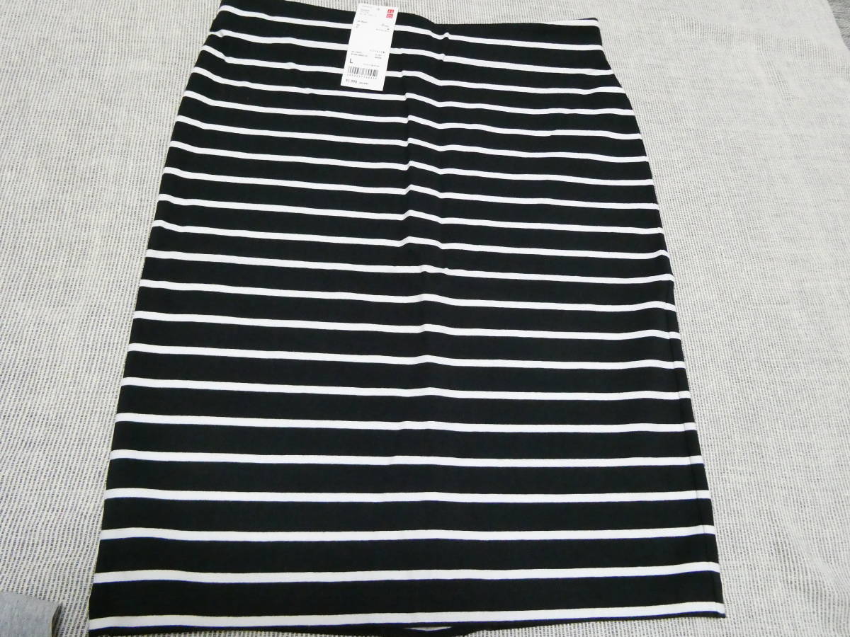 > ユニクロ「ペンシルボーダースカート」サイズL 黒x白ストライプ とても良い生地 新品タグ付き