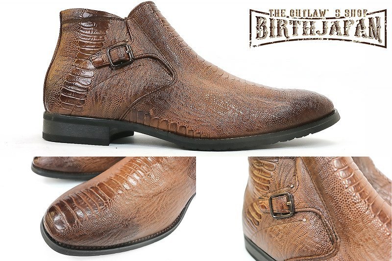 - クロコ柄 トンガリ ショートブーツ 茶 ミドル丈 メンズ シューズ ファッション オラオラ系 悪羅 お兄系 メンナク ホスト 派手 秋冬 106