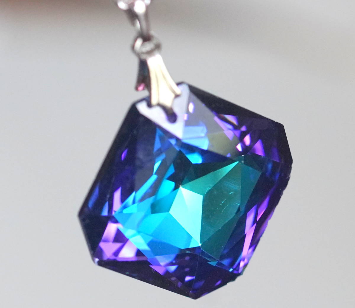 - 美しい 大粒 スクエア ガラスストーン ネックレス バミューダブルー