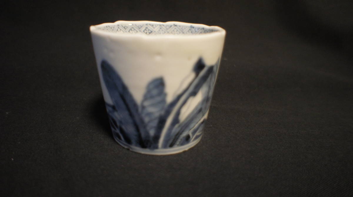 - 日本文化の精緻 そば猪口 江戸期 大胆な「芭蕉図」 蛇の目高台 江戸のエスプリが活きている