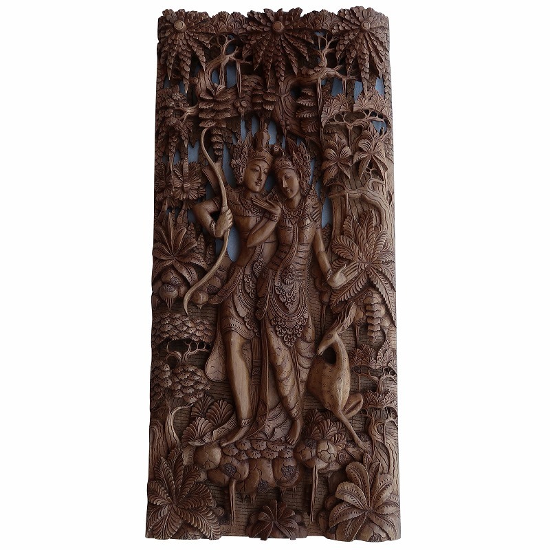 - ラーマヤナ物語 ラーマ&シータ 木彫りのレリーフ 46.5X107 カパランウッド無垢材【木彫り彫刻 壁掛け ウッドレリーフ】YSA-050516