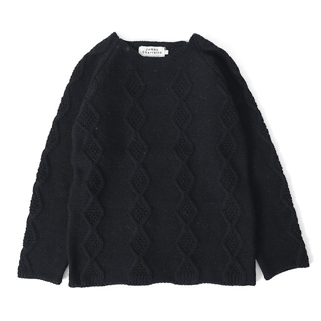 > 古着 James Charlotte ジェームズシャルロット 編み込み ウール ケーブルニット セーター S 紺 レディース
