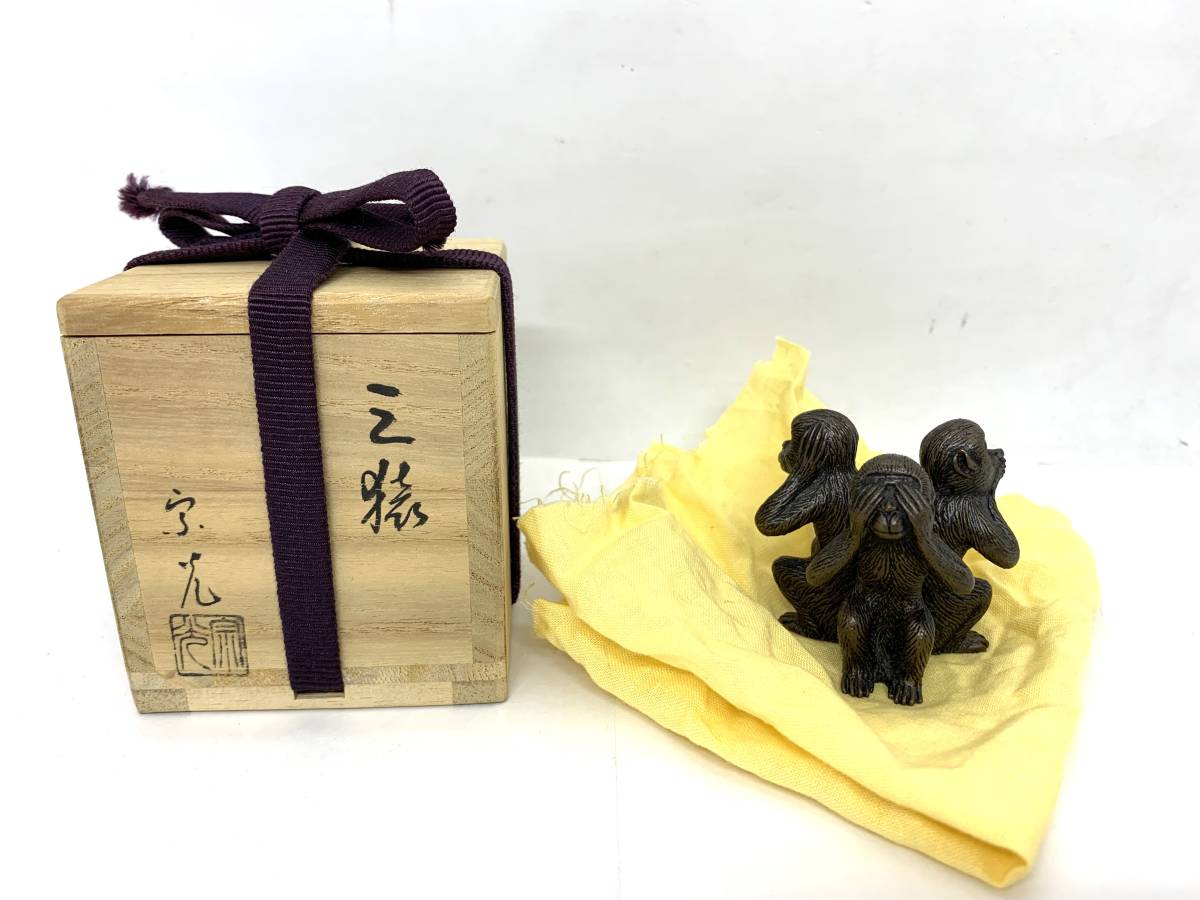 - 宗光 【三猿】蓋置 共箱 銅製 茶道具 見ざる聞かざる言わざる