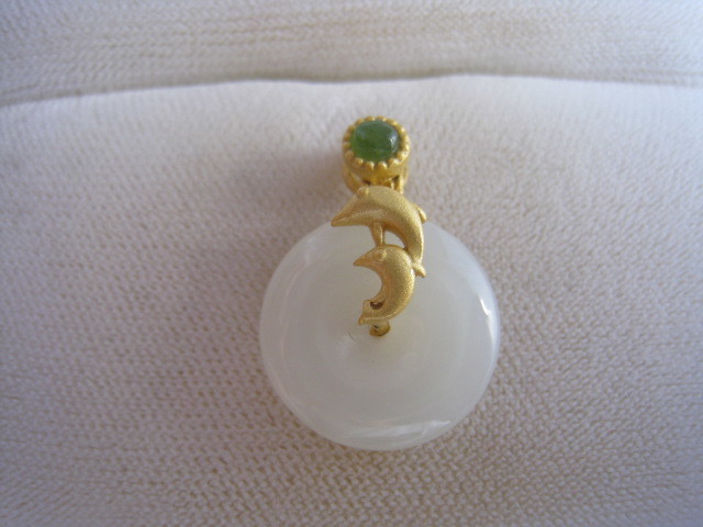 - [SAMU]華麗!!天然和田玉 幅1.6cm シルバー925 可愛いイルカ ペンダント★超美品!