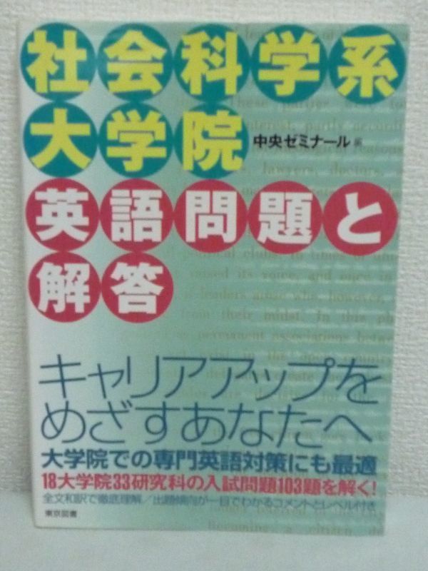 - 社会科学系大学院英語問題と解答 ★ 中央ゼミナール ◆ 大学院での専門英語対策にも最適 18大学院33研究科の入試問題103題を解く 出題傾向