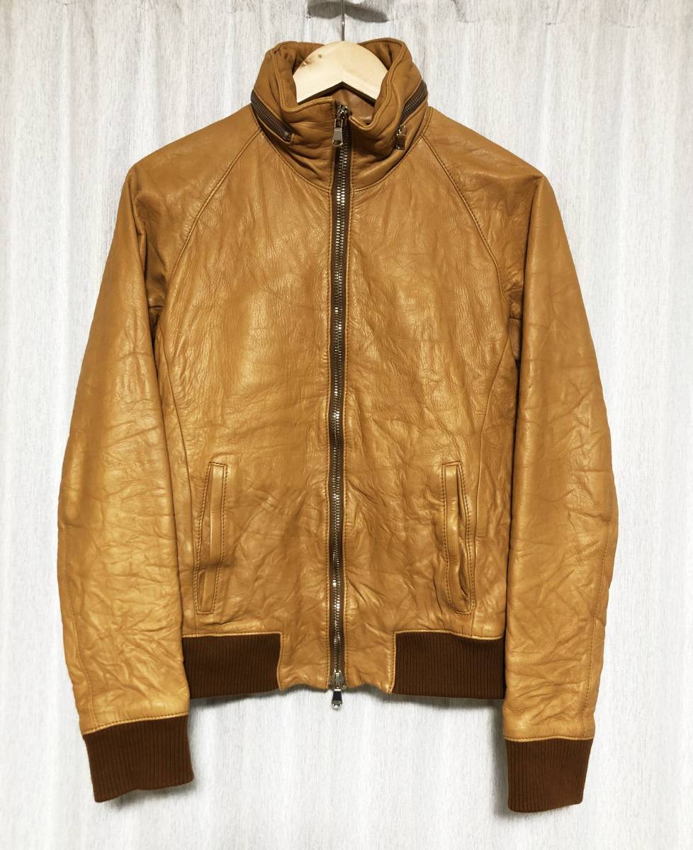 > 美品☆[junhashimoto] 定価178,500 3rd LEATHER JERSEY 製品加工 シングルライダース レザージャケット 2 キャメル ジュンハシモト
