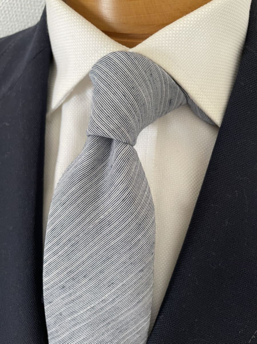 - 【未使用】東京シャツ リネン混ソリッドタイ ネクタイ大剣約8.5cm ライトグレー BRICK HOUSE