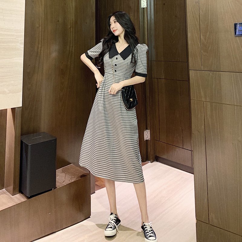> ZJM1453 *チェック柄*総柄*襟付き*スリット入*タイトワンピース*エロかわ?ぴったりボディライン?良質*Vネック*カシュクール