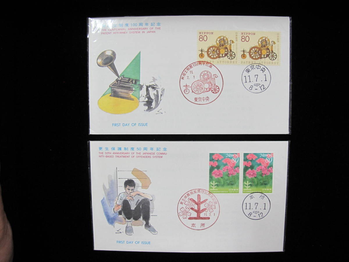 - FDC 平成11年 更生保護制度50周年、弁理士制度100周年記念 2通 APCP 郵便文化振興協会 初日カバー 初日印 記念印
