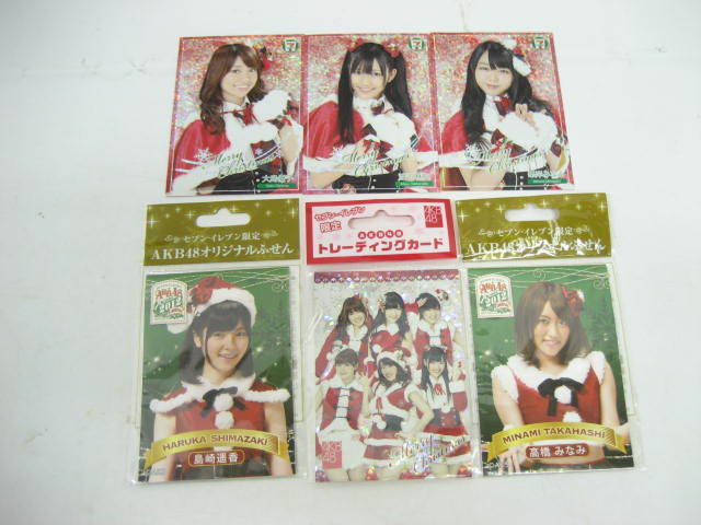 > 6点セット AKB48 トレーディングカード オリジナルふせん カード 付箋 クリスマス セブンイレブン限定 キラ 大島 渡辺 峯岸 高橋 島崎 他