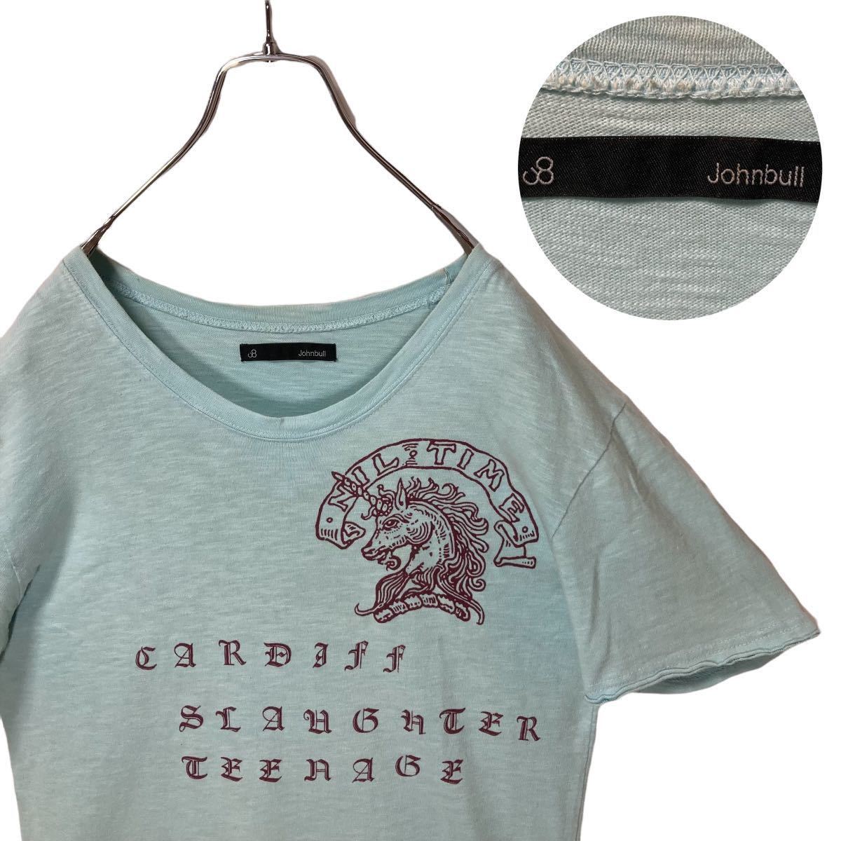 - グッドデザイン!JOHNBULLジョンブル ホースロゴプリントTシャツ グリーン~サックスブルー