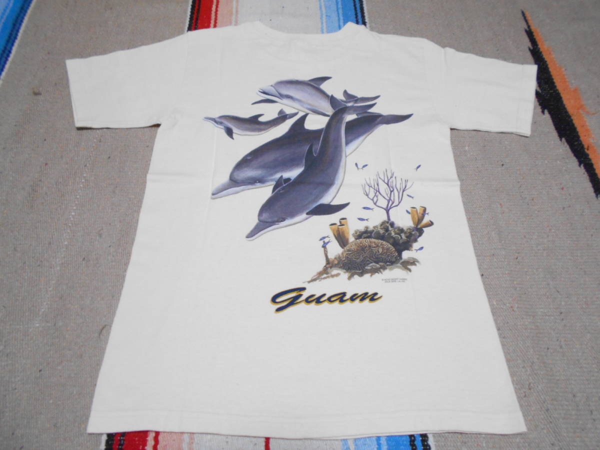 - 1990年代製 DOLPHINS GUAM GEOFF HAGER イルカ 珊瑚礁 Tシャツ FRUIT OF THE LOOM FRANCISANA HOURGLASS RISSO'S CLYMENE DOLPHIN