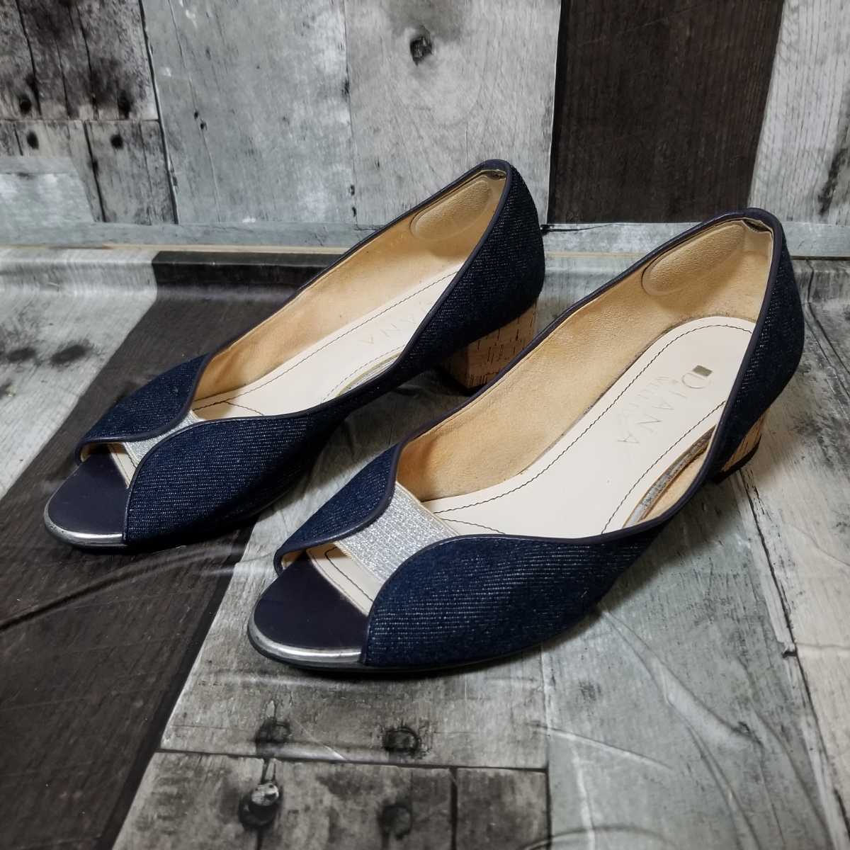 > DIANA ダイアナ オープントゥ パンプス 23.5cm デニム ネイビー系 レディース