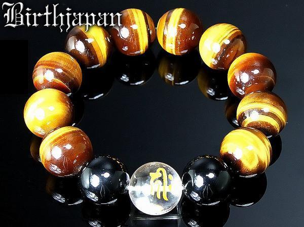 - 18mm タイガーアイ&オニキス&梵字数珠ブレスレット キリーク子年