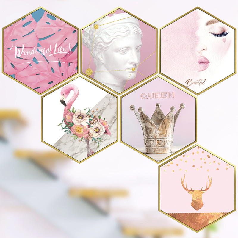 - hesperus ウォールステッカー YAC034 ピンク系六角形 フラミンゴ 癒す DIY 壁紙 インテリアシート 剥がせる 送料無料
