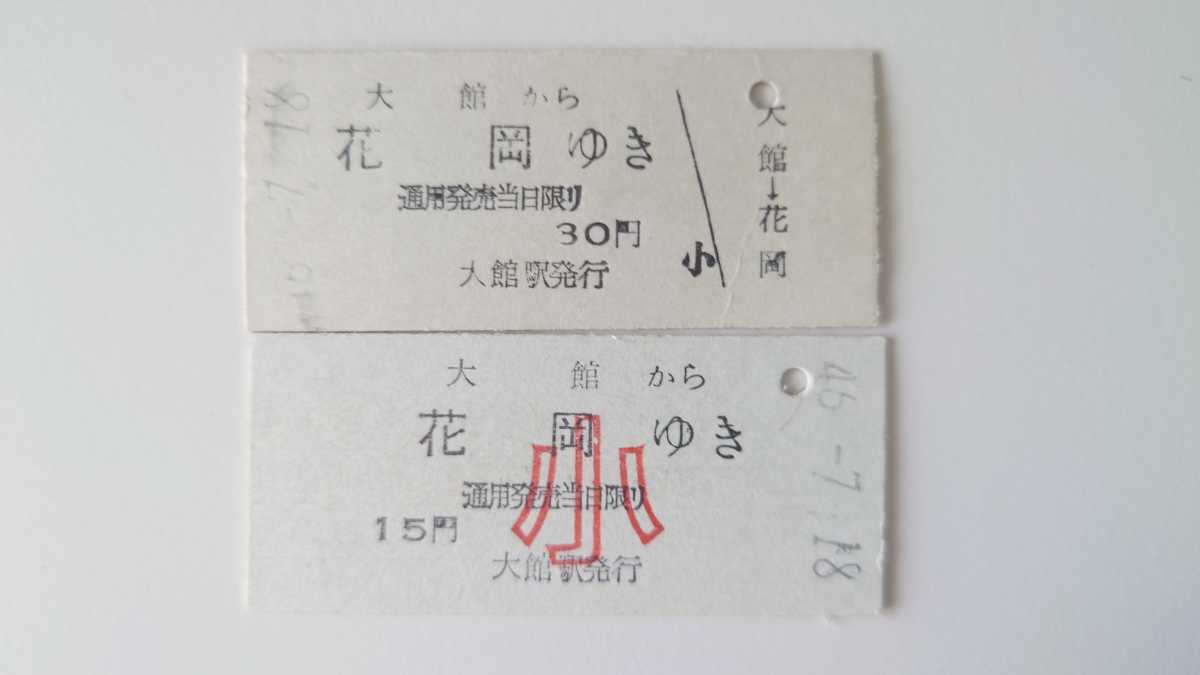 - ▽同和鉱業小坂鉄道▽大館から花岡ゆき乗車券▽B型硬券 大人小児2枚一括