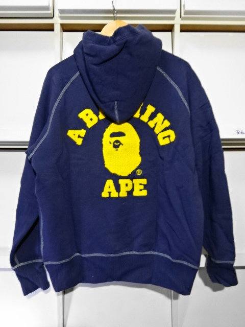 > 初期 BAPE【M】カレッジロゴ 刺繍 ジップパーカー A BATHING APE(ア ベイシング エイプ)NIGO 猿顔 APE HEAD アーカイブ ヴィンテージ