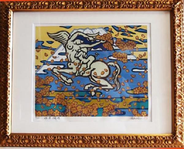 - 2571 二重作龍夫・作 「桜花爛漫」 版画48/100