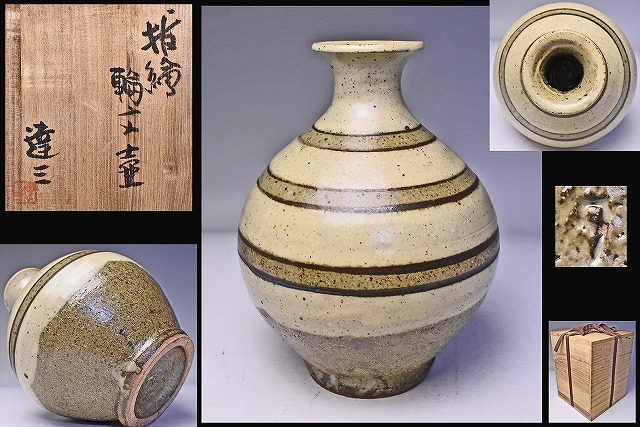 - 島岡達三 ★ 指絵 輪文 壺 ★ 共箱 ★ 人間国宝 ★ 師:浜田庄司 ★ 華道具 民芸陶 ★ Shimaoka Tatsuzo ★ 検 ゲルトクナッパー