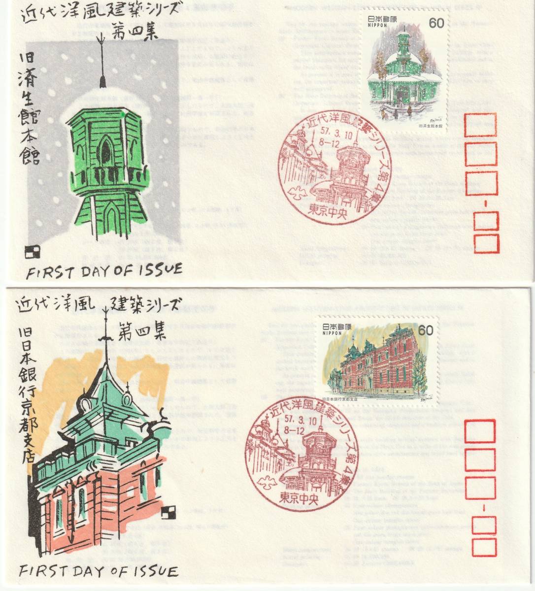 - FDC 1982年 近代洋風建築シリーズ 第4-5集 60円 4通 銀座わたなべ